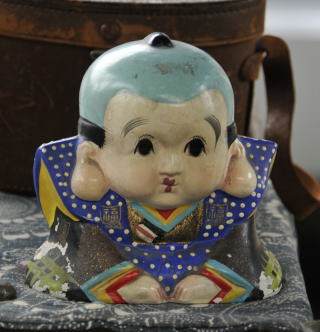 Description: Antique Fair at Gokokuji Temple is held every month on the second Saturday. The next fair will be on November 9 2013. About 100 dealers open their stalls from early morning to 4 p.m. Looking around stalls and finding different items from ones you use in your country will be a fun and a good way to learn about different cultures and histories. The picture in the right is Fukusuke – a popular toy (in old Japan) in the shape of a dwarf with a big head used as an ornament and often seen as a shop sign. It was believed to bring luck.