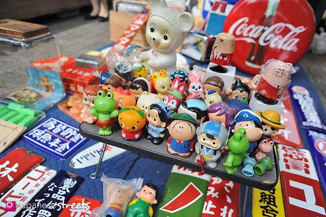 About 50 shops display and sell Japanese antiques, old books and magazines, kimonos, old toys and dolls, arts and more.