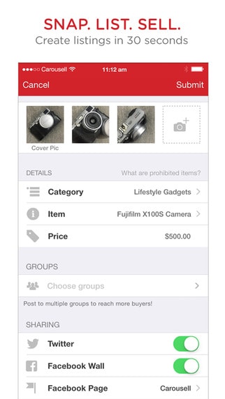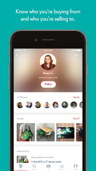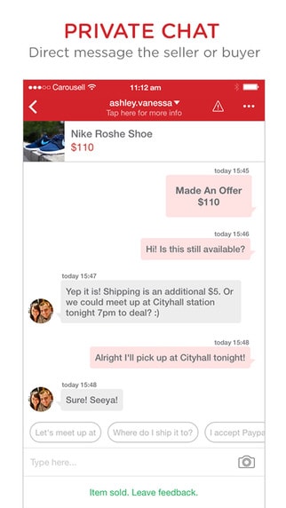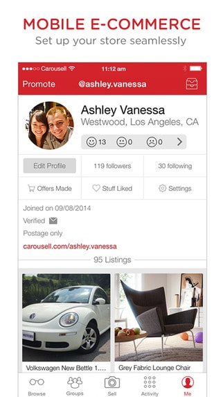 Social media integration takes this further, making it possible to share listings on Facebook, Twitter and Instagram with your friends and family. This also helps create a feedback track and trust in the Carousel community, where you can earn badges to show your reliability as a trader.