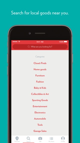 With Close 5 you can find local deals on items including electronics, furniture, fashionable clothing, accessories, baby items and more. Users have the ability to conduct a search within 1 to 5 miles from their home, or extend their search radius to 50 miles to scope out items in new areas.