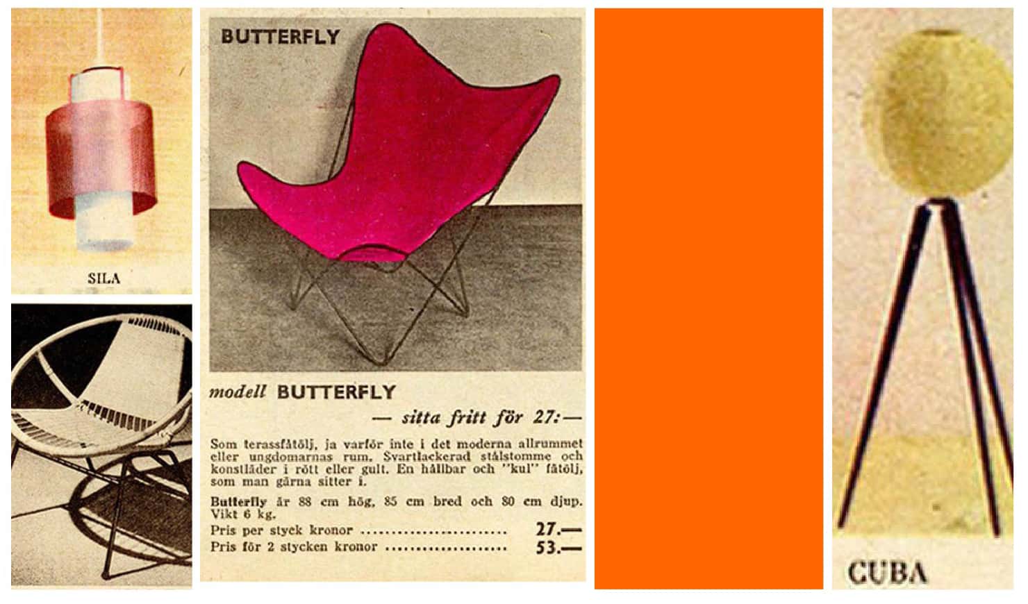 Some great-looking finds in this collection include the butterfly chair, the Ekenäset chair (which runs $200 – hunt around any modern furniture store and the same thing will cost you two to four times as much), circular chairs and the red glass Gårdskär pendant lamp (seen in the snippet of a 1956 IKEA catalog – don’t miss to check the gallery below) as well as a few of the pristine, Nordic designs that came to define quintessential mid-century modern furnishings.