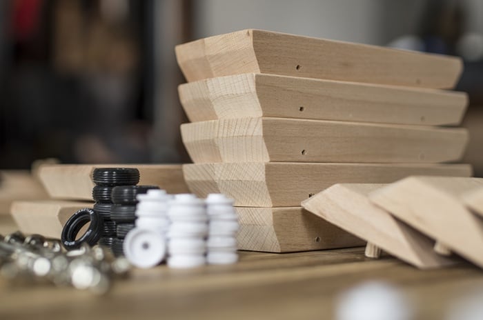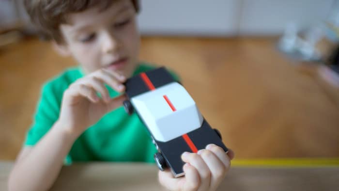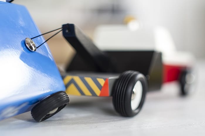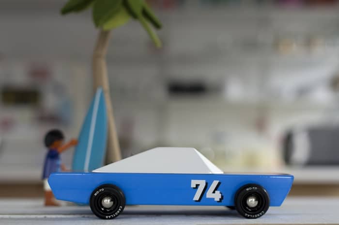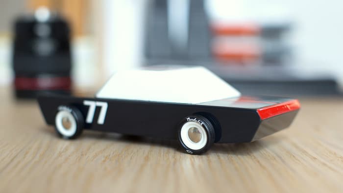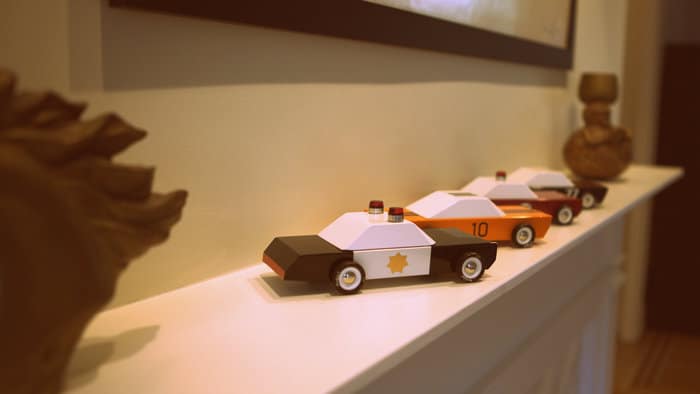 What makes Candylab’s toy cars so unique and desirable, is that they are all about minimalism. Their bodies are abstract (but still recognizable) representations of the classic American muscles cars from the 60s and 70s, and the number of elements in each car is kept to a strict minimum: solid beechwood for the body, plastic rims, rubber tires, a few metal pins, some paint… and that’s all!
