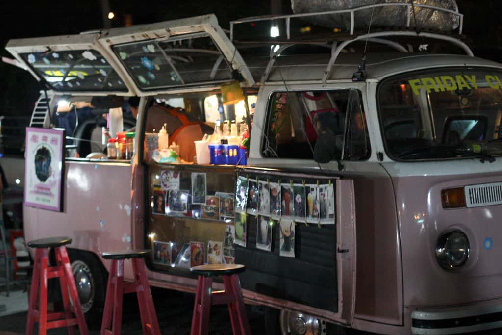 Between thrift stores, Tattoo parlors, and barber shops, Talad Rot Fai also hosts classic Vespa scooters and VW Beetles exhibitions. It is also known as good a place to grab some food and a beer.